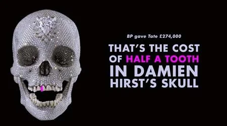 17 yıllık bu süreçte yılda milyarlarca dolar kâr eden BP, Tate’e toplam 3,8 milyon sterlin ödedi. Yıllık ortalama 224.000 sterline denk gelen bu ücret, Damien Hirst’ün elmas kaplı kafatası “For the Love of God” adlı eserindeki bir diş kadar bile etmiyor. Tate yönetimi BP’den alınan bu desteğin “hatırı sayılır” olduğunu söylerken, protestocular bu rakamın utanç verici derecede küçük olduğunu düşünüyor.[2]